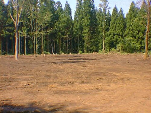 現在,伐採した木を運び出し,切り株などの後片付けが終わったところです。これから井戸を掘り,基礎の施行に取り掛かることになります。