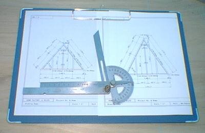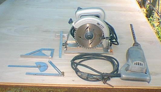 ご覧のように、ドームパネルの製作に必要な工具にはあまり特殊なものはありません。主役は電動丸鋸です。ちょっと変わった道具としては左端にある分度器と自在スコヤは必須です。