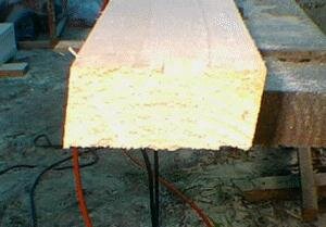 ドームフレーム材(パネルを構成する外側の3角形の枠組み)の断面形状は鋭角が角度δの平行四辺形になります。長方形の部材から平行四辺形の断面を切り出します。木材は40mm×100mmの長方形断面を持つ栂材です。この材から、高さ90mmの平行四辺形の断面を切り出します。