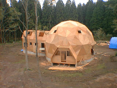 ドームの主要な構造は完成したが、ドーム外側の壁張りや屋根のシングルを葺くために細かい作業が残っている。今週は外回りの仕上げの準備作業を行う。