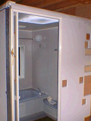 浴室エクステンションの内部の昨日の朝の状態。昨日、右手奥の位置にユニットバスが据え付けられた。