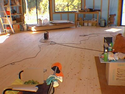 ドーム本体部分の床工事も終盤を迎えた。写真は4月14日朝の状況です。