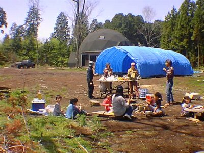 今日は知人を交えたバーベキューの豪華な昼食になりました。作業のほうは、エクステンション部分の床張りです。昨日と今日の二日間で終了。