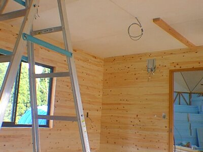 施行が終わった状態。天井から出ているコードは、エクステンションの隔壁に取り付けるスイッチ用の配線。