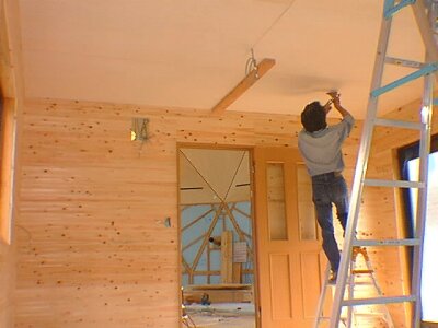 2001年5月6日、ゴールデンウィークの最終日にエクステンション部分の天井を張った。天井材はドーム本体部分の内装と同じ、5.5mm厚のシナベニヤを使用した。