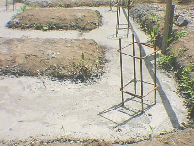 立ち上がっている鉄筋は、ここにボイド管の独立基礎を施工します。
