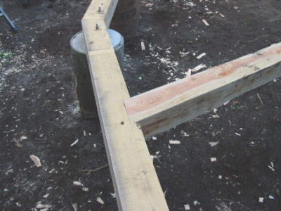 2001年7月27日:土台と大引の接合部分の加工。