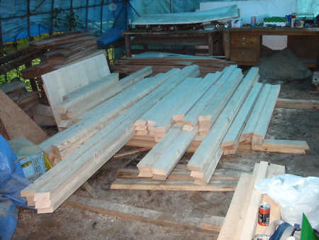 作業場では、立壁およびエクステンションパネルの主要部材の加工が終わりました。週末には部材を現地に搬入して来週からは現地での組立作業にかかります。