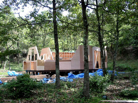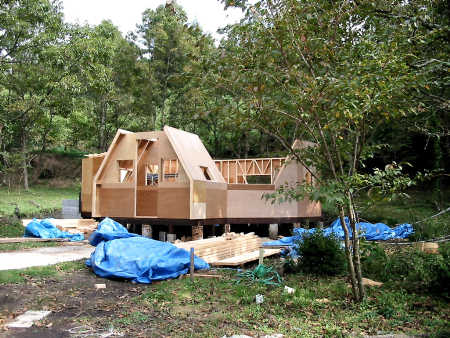 玄関両翼にドームパネル(三角形パネル)を取り付けた状態。
