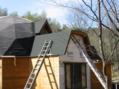 今年の春は、比較的早い時期から暖かくなったので、3月のなかばからシングルの施工にかかることが出来ました。しかし、4月から5月にかけて天候の不安定な日が多く、だいぶ施工が遅れました。それでも5月21日に、シングルの施工が終わりました。何とか入梅前に屋根が完成し、一安心です。あとは梅雨の大雨でシングルの施工をチェックすればOKです。